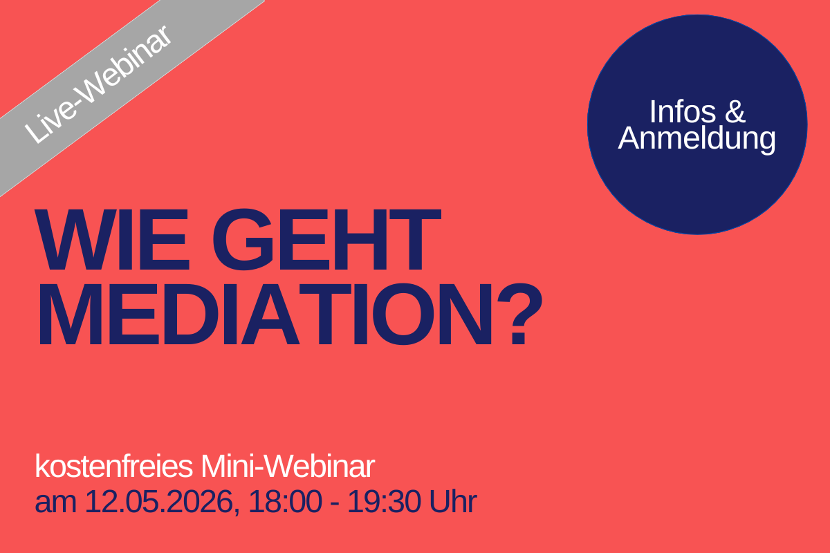 - Geeignet als Fortbildung für zertifizierte oder lizensierte Mediator:innen